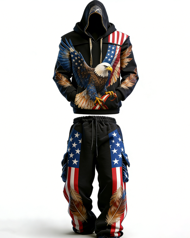 Men's Spring Fashion Contrast-Color Embroidered Hoodie and Pants Two-Piece Set 1377