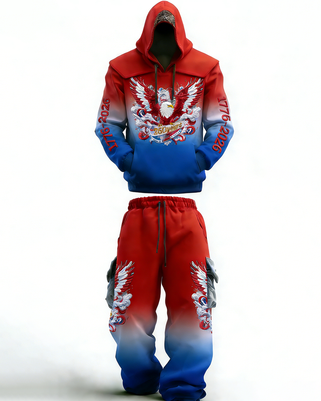Men's Spring Fashion Gradient Embroidered Hoodie and Pants Two-Piece Set 4224
