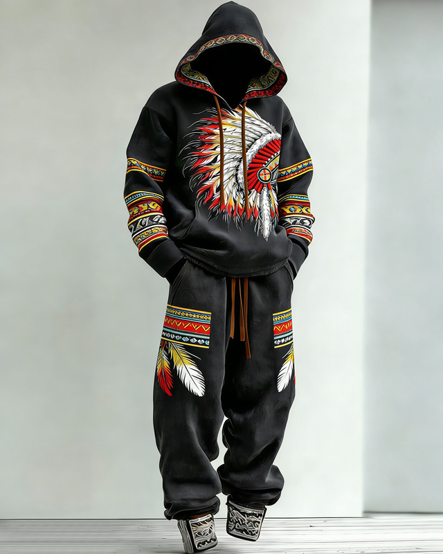 Men's Fashion Gradient Native Hoodie and Pants Two-Piece Set 2670