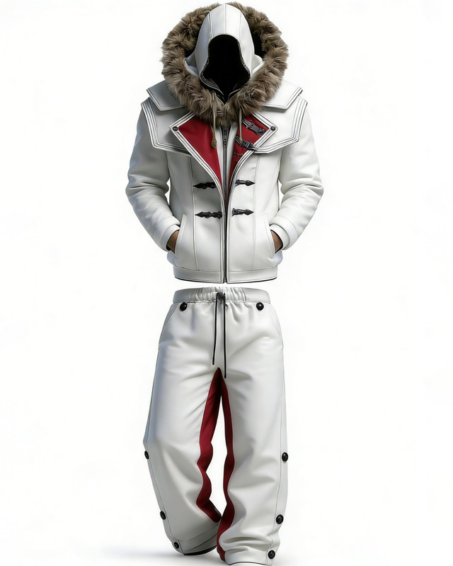 Men's Viking Winter Warm Hooded Jacket (with Fur Collar) and Pants Two-Piece Set 6170